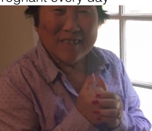 口いっぱいに美味しそうに本格モクバンする韓国人女性。